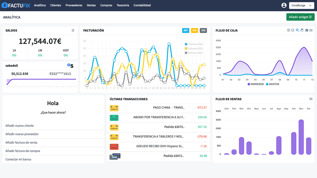 Vincula y trabaja de forma integral la facturación, la contabilidad y la tesorería de tu negocio. Optimiza procesos, automatiza tareas y obtén información en tiempo real.
